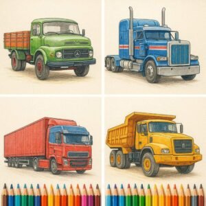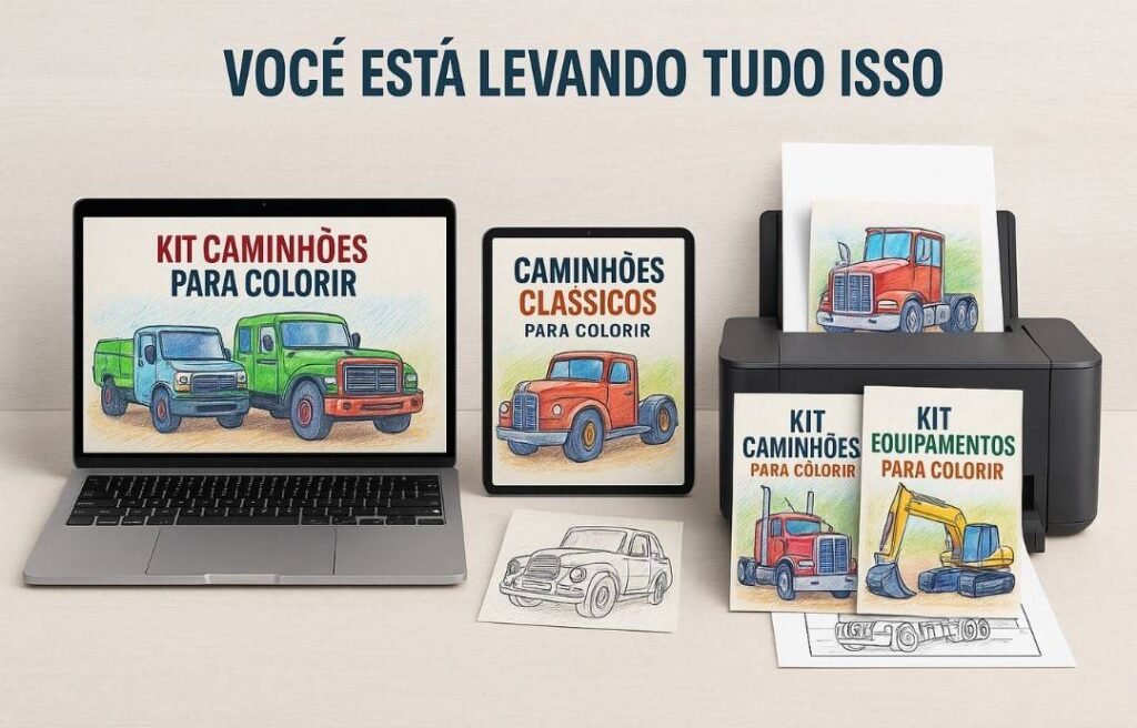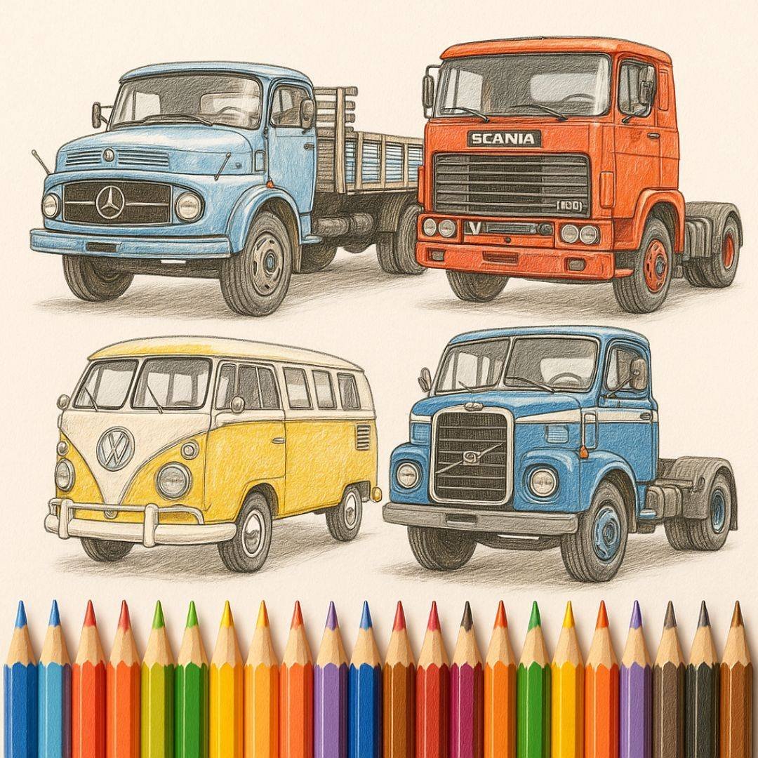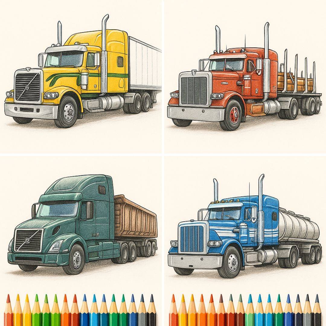 Kit Completo: 4 Livros de Caminhões para Colorir - do Clássico ao Gigante!